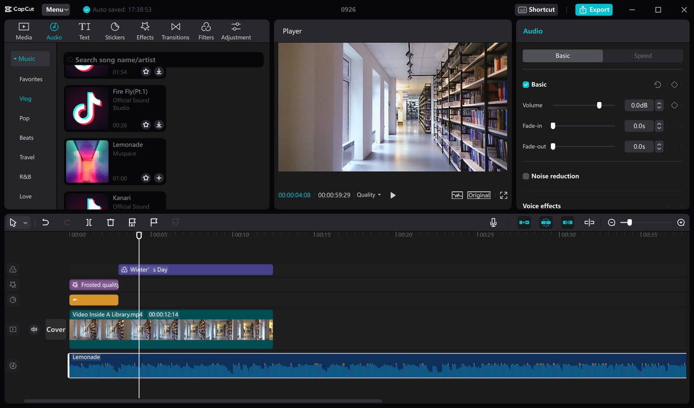 CapCut ļauj vēl vairāk uzlabot jūsu videoklipu, pievienojot tekstu, uzlīmes un mūziku. Tekstu var pārklāt ar kontekstu, titriem vai virsrakstiem, lai skatītājiem sniegtu pilnīgu informāciju. Programma piedāvā arī plašu uzlīmju klāstu, lai video pievienotu jautrus un radošus elementus. Turklāt tai ir plaša mūzikas bibliotēka ar dažādiem skaņu celiņiem un skaņu efektiem, lai radītu noskaņu un pastiprinātu video emocionālo ietekmi.